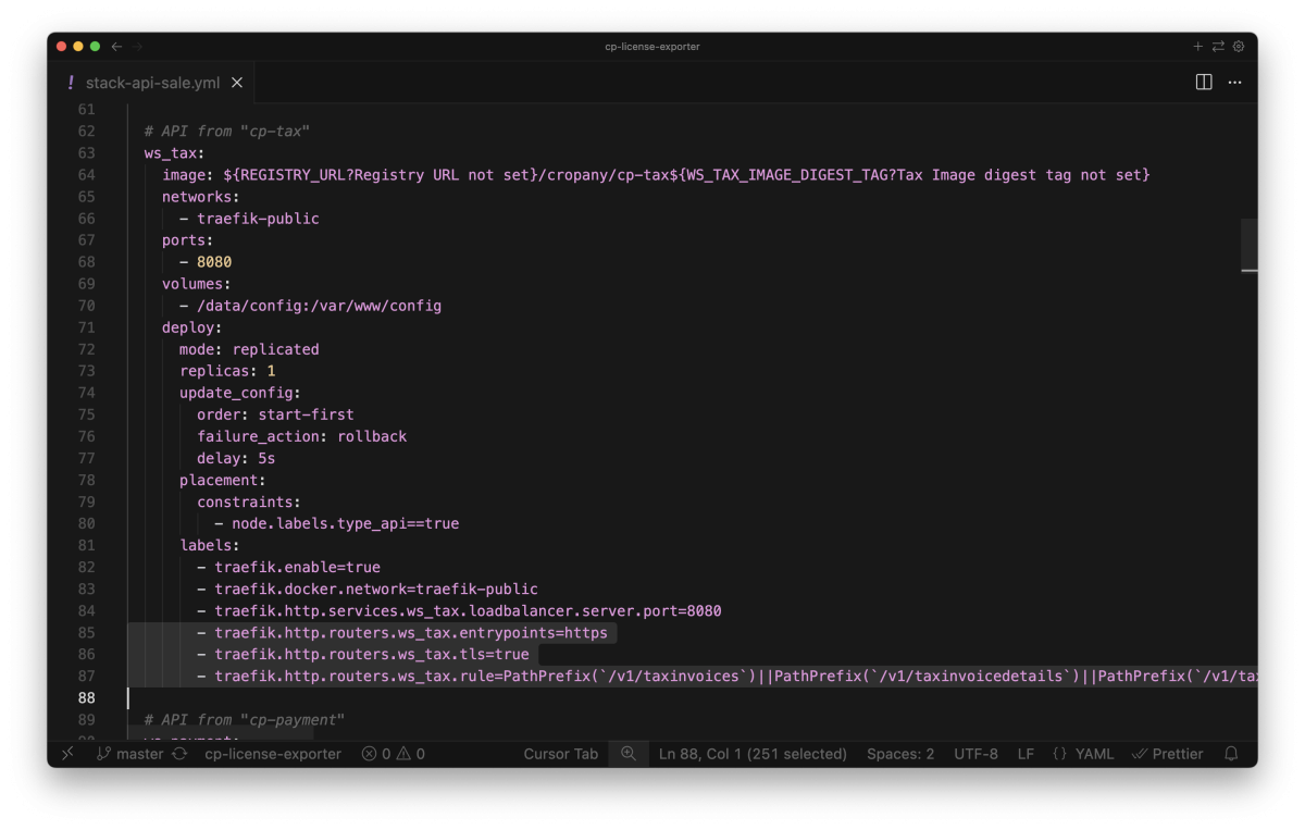 - + toàn bộ Traefik labels (rule dài, entrypoint, tls, port, …)